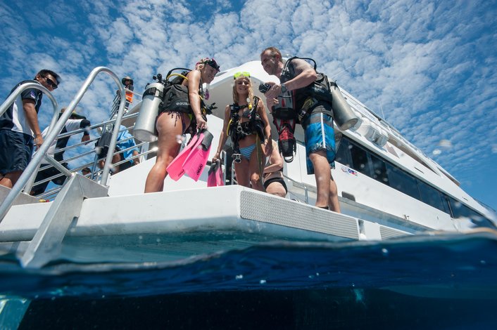 - Five hours of snorkelling or diving at two outer Great Barrier Reef locations