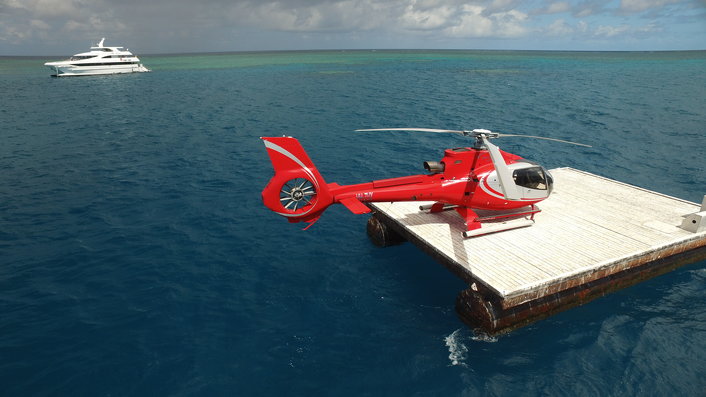 • helicopter flight to join Down Under Cruises • 2 hours at Reef • Snorkelling equipment • Lunch • Return cruise with a complimentary glass of wine and cheese