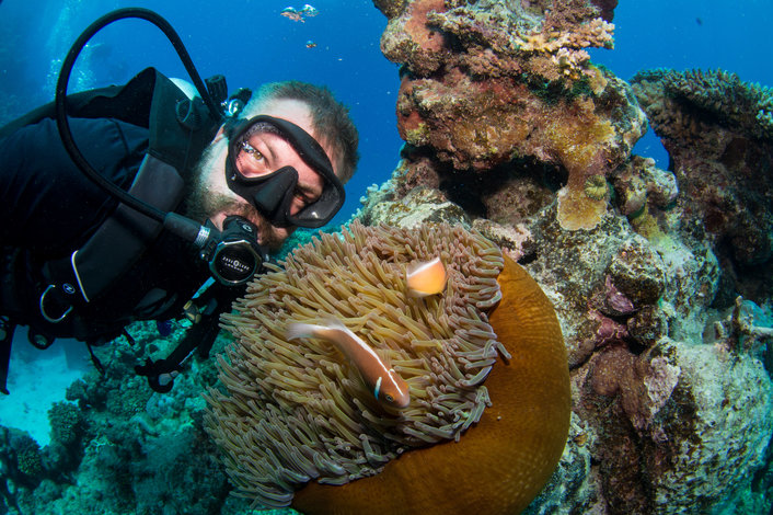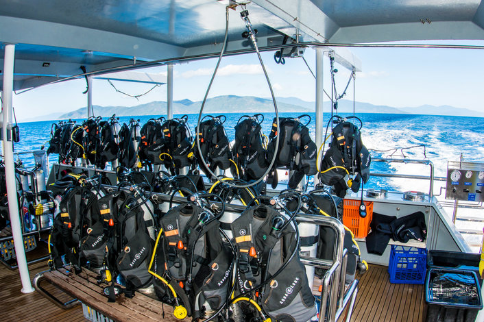 Introductory Dive - So you would like to get up close and personal with the fish and the coral like Jaques Cousteau!!! You can pre-book your first dive, or book up to 2 dives on board. Intro diving is safe, fun, easy and the best way to see the Great Barrier Reef. Our Diving Instructors are highly experienced, calm and fun to be with. NO experience is necessary, and you don’t even have to be able to swim. You will be given a full on-deck briefing, shown how the equipment works and in small groups of no more than 4 divers, be led on a Diving Instructor controlled dive. Already hold Open Water Dive Certification? You can pre-book your first dive, or book up to 2 dive whilst on board. Just bring along your dive licence. Prescription masks available for hire on board for $10. T shirts, snacks & merchandise available on board. We can offer a transfer service from your Cairns or Northern Beaches hotel. This must be pre-booked but you are required to pay for the transfer directly at check in. Transfers from City hotels $18.00 per person / from Northern Beaches hotels $25.00 per person.