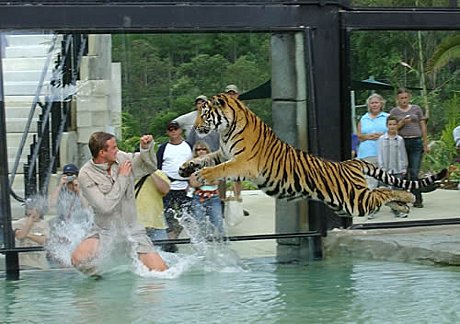 The Crocoseum allows you to see and learn about crocodiles, snakes and birds in a live presentation. See beautiful and colourful birds fly free then return to their handlers while you learn about each species. Watch in amazement as a snake handler holds dangerous yet beautiful snakes as though they were puppies, and hold your breath as crocodiles launch from the water only metres from the presenter.