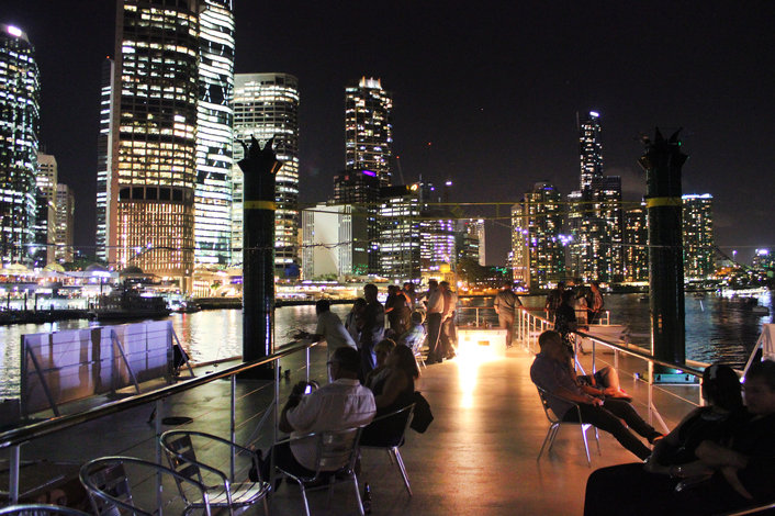 Boarding and disembarking from the Lower Boardwalk at Eagle Street Pier, 1 Eagle Street, Brisbane. Boarding from 6.30pm for a prompt 7:00pm departure. Please check in at our booking office on the boardwalk level at Eagle Street Pier prior to boarding the vessel. Check-in is open from 2 hours prior to your departure time