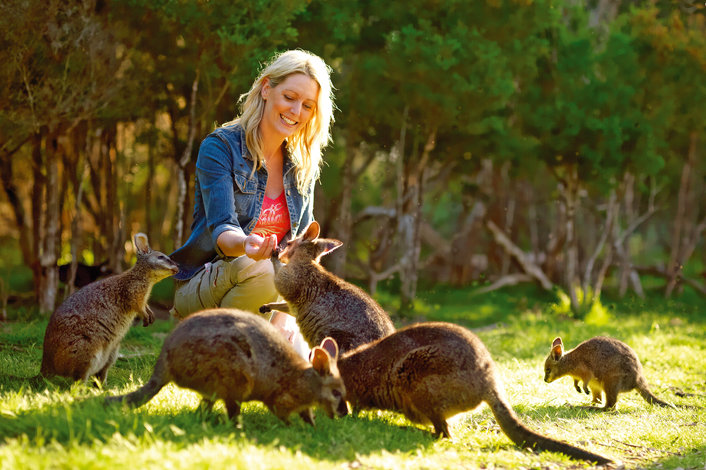 Next, travel on to the multi-award winning Moonlit Sanctuary Wildlife Conservation Park to enjoy a guided wildlife walk. Learn about iconic Australian animals such as koalas, emus, wombats & Tasmanian devils, as well has taking the opportunity to meet and hand-feed many species of kangaroos and wallabies.